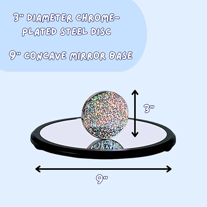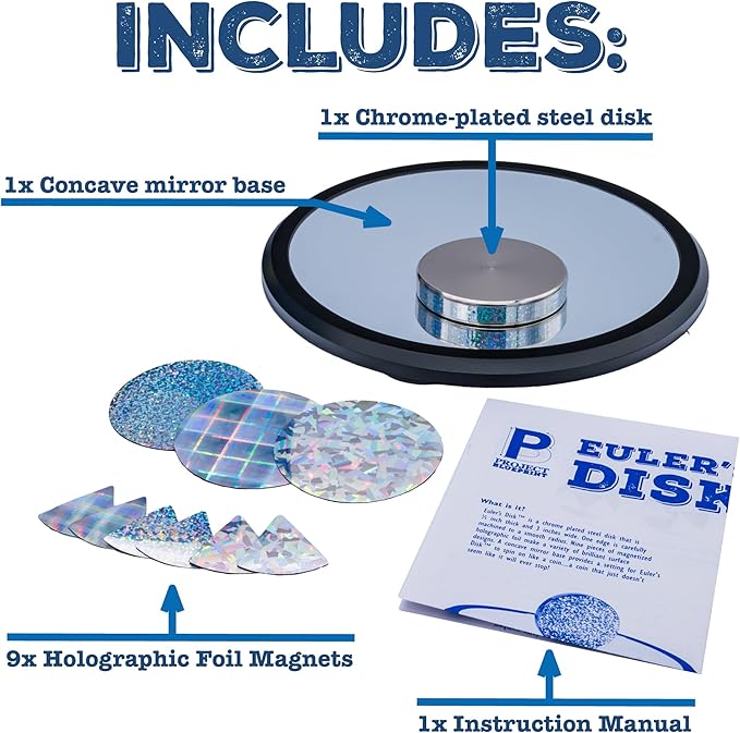 - Complete Set: This physics toy Includes 6 spinning disks, a 9-inch concave mirror, 9 magnetized foils, and instructions; perfect for creating visual effects and exploring the science of motion and kinetic energy