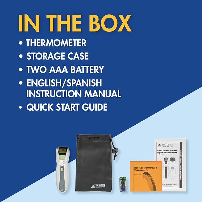- Included Components : Thermometer, storage pouch, 2 AAA batteries, English/Spanish instructions