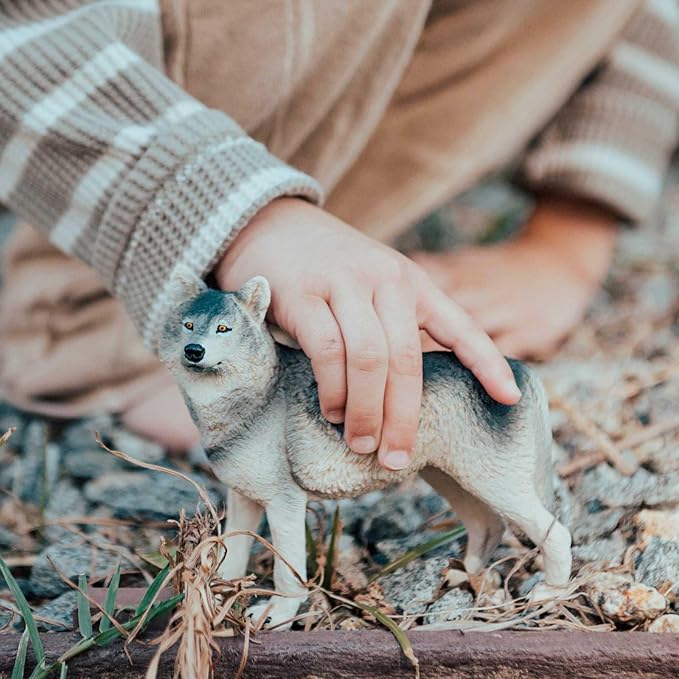 - Handy Dimensions: Measuring 4.8 inches long, under 2 inches wide, and 4.3 inches tall, this gray wolf toy figure is about the size of a soda can, making it perfect for little hands to hold and explore.