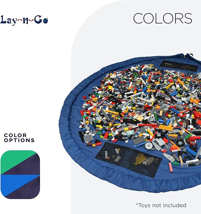 - QUICK CLEANUP & EASY STORAGE: No more dumping toy bins and baskets. The Lay-n-Go 60” playroom toy organizer mat has a raised edge to keep your toys in place. Just pull the drawstring, and it turns into a bag that's easy to carry and store.