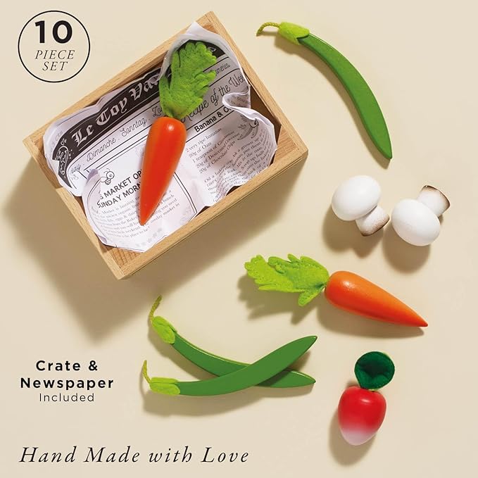 Le Toy Van - Wooden Honeybee Market Vegetables '5 a Day' Crate | Fun Role Play Supermarket Pretend Play Shop Food | Great Gift for Boys Or Girls, Harvest Vegetables Crate (TV182)