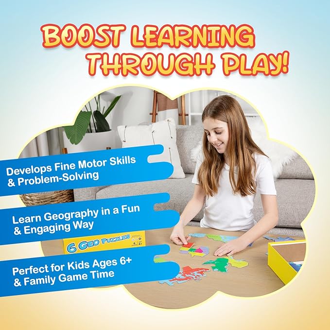 - PUZZLE FOR ALL AGES: This map puzzle for kids age 6+ features large and small pieces to explore the countries of the world. Our maps and geography puzzles include USA & Canada, Europe, Latin America, Asia, Africa, and World map puzzle. A great addition to your kids map puzzle games. Make geography fun with our kids geography map puzzle.