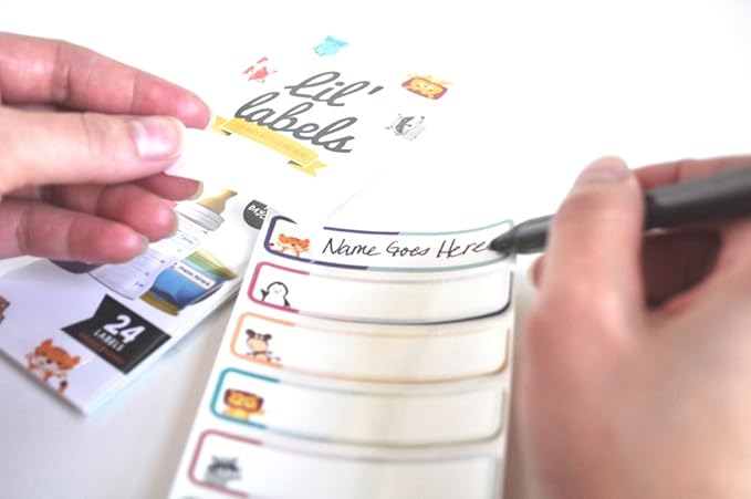 - Write-on, waterproof bottle labels for daycare. Safe to use.