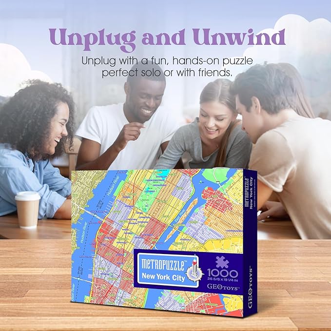 GeoToys Metropuzzle, New York City Jigsaw Puzzles 1000 Pieces, Detailed City Map Geography Puzzle, Challenging Adult Puzzle, Fun Puzzles for Adults, Family Puzzles, US City Map Poster Included