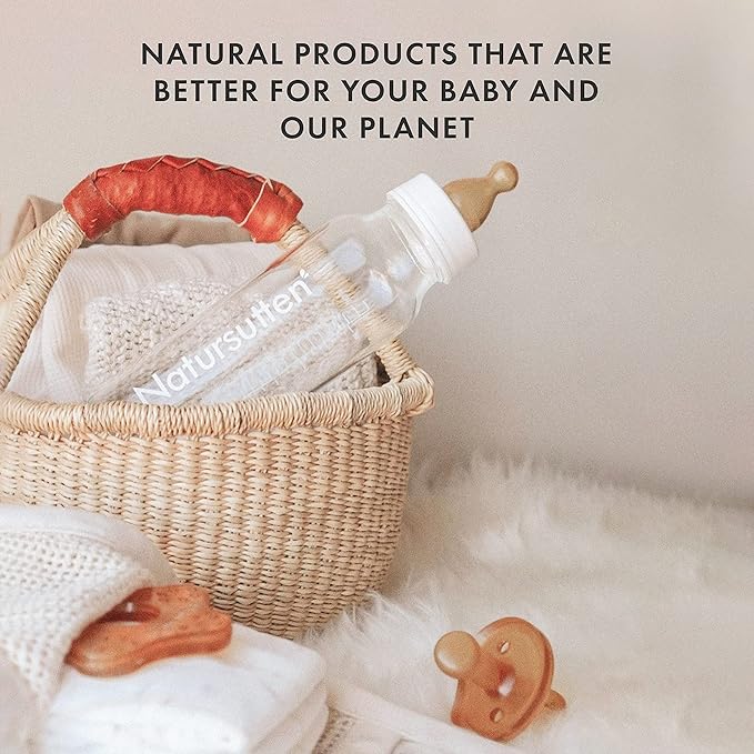 Natursutten Anti-Colic Glass Baby Bottle 2-Pack - 8 oz, 4 oz Bottles for Breastfeeding Babies - Newborn Bottles Set: Natural Rubber Slow-Flow Bottle Nipples, Seals, Valves, Baby Bottle Caps (8 Ounce)