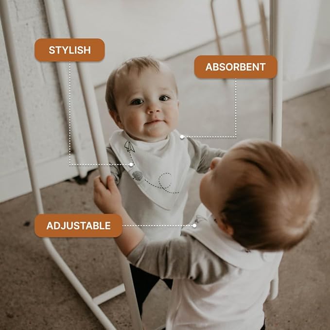 • SUPER SOFT, ABSORBENT & MESS-READY – Made with 100% cotton on the front and soft, absorbent polyester backing, these bibs catch drool, spit-up, and food messes, keeping baby dry, comfortable, and stylish all day long.