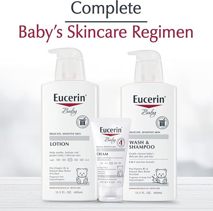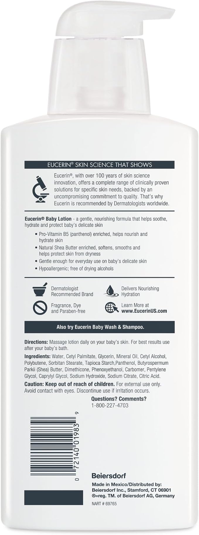 - Includes one (1) 13.5 fluid ounce bottle of Eucerin Baby Body Lotion, Fragrance Free Baby Moisturizer