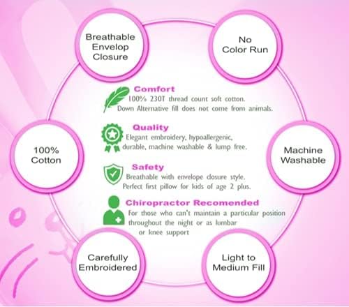 - QUALITY MATTERS - 233T Cotton Shell and Down Alternative Fill. Bright color printing which does not fade or run during washing; The high quality embroidery makes these kid pillows unique.