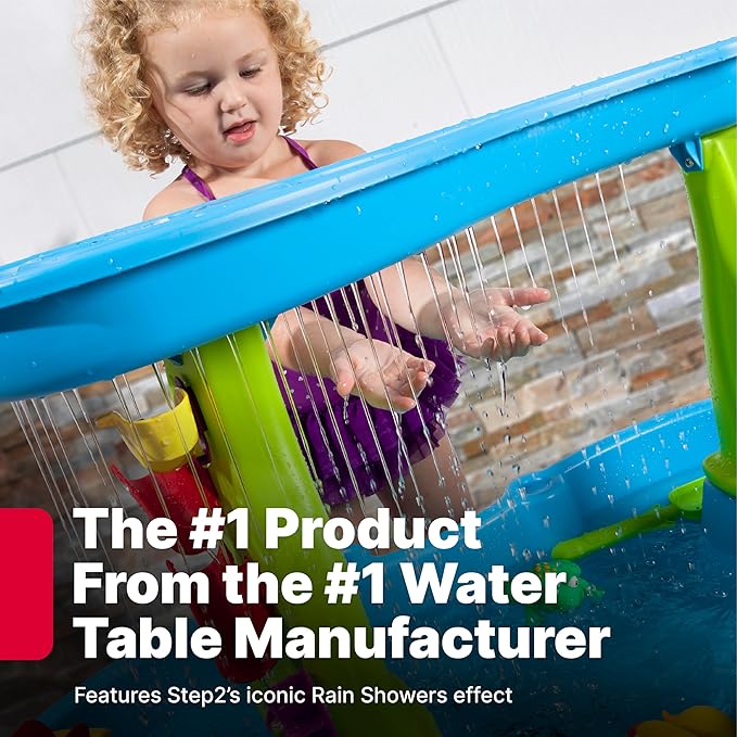 - This kids’ water table will create a mini water park right in your backyard. Use the large bucket to scoop up water from the pond and pour into the top waterfall tray. Watch as the rainfall effect is activated as the water splashes into the pond.
