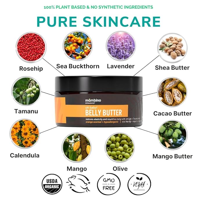 - SKIN REJUVENATION: This pregnancy belly cream, with organic Calendula Infused Oil and Rosehip Fruit Oil, works together to improve the look and feel of skin’s texture during pregnancy and rejuvenate your skin from within.