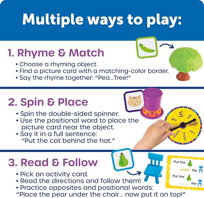 - MULTI-SKILL LEARNING - Builds vocabulary, rhyming skills, following directions, and early phonemic awareness simultaneously through engaging hands-on activities.