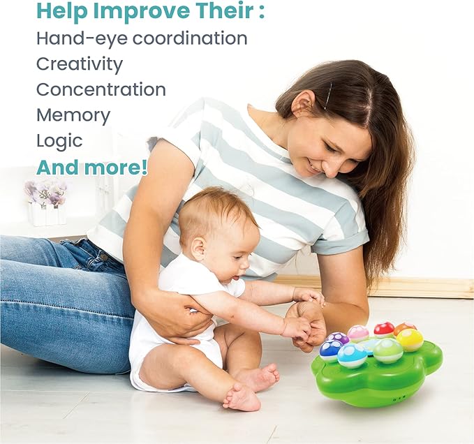 - BEST BIRTHDAY GIFT IDEAS - for toddler boys and girls. Early educational toy with colorful light-up mushrooms to learn numbers, colors and play music.
