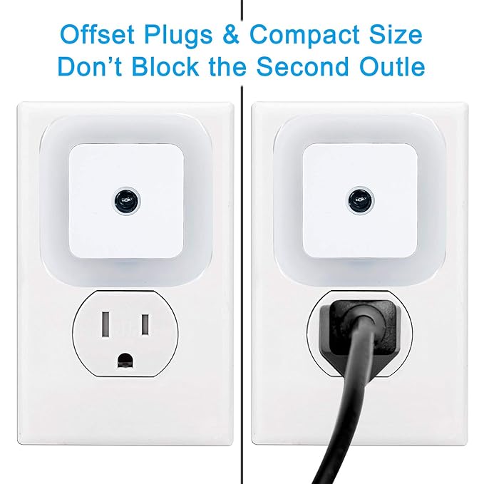 - Built-in sensitive light sensor, the nightlight automatically turns on at dusk and off at dawn