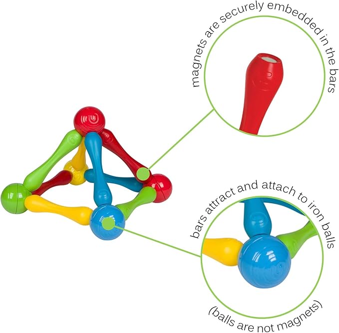 Goobi 40 Piece Construction Set Large Building Blocks Developmental Play Magnetic Sticks STEM Learning Colors Creativity Imagination 3D Puzzle Educational Toys for Ages 1 2 3 Year Toddlers Preschool