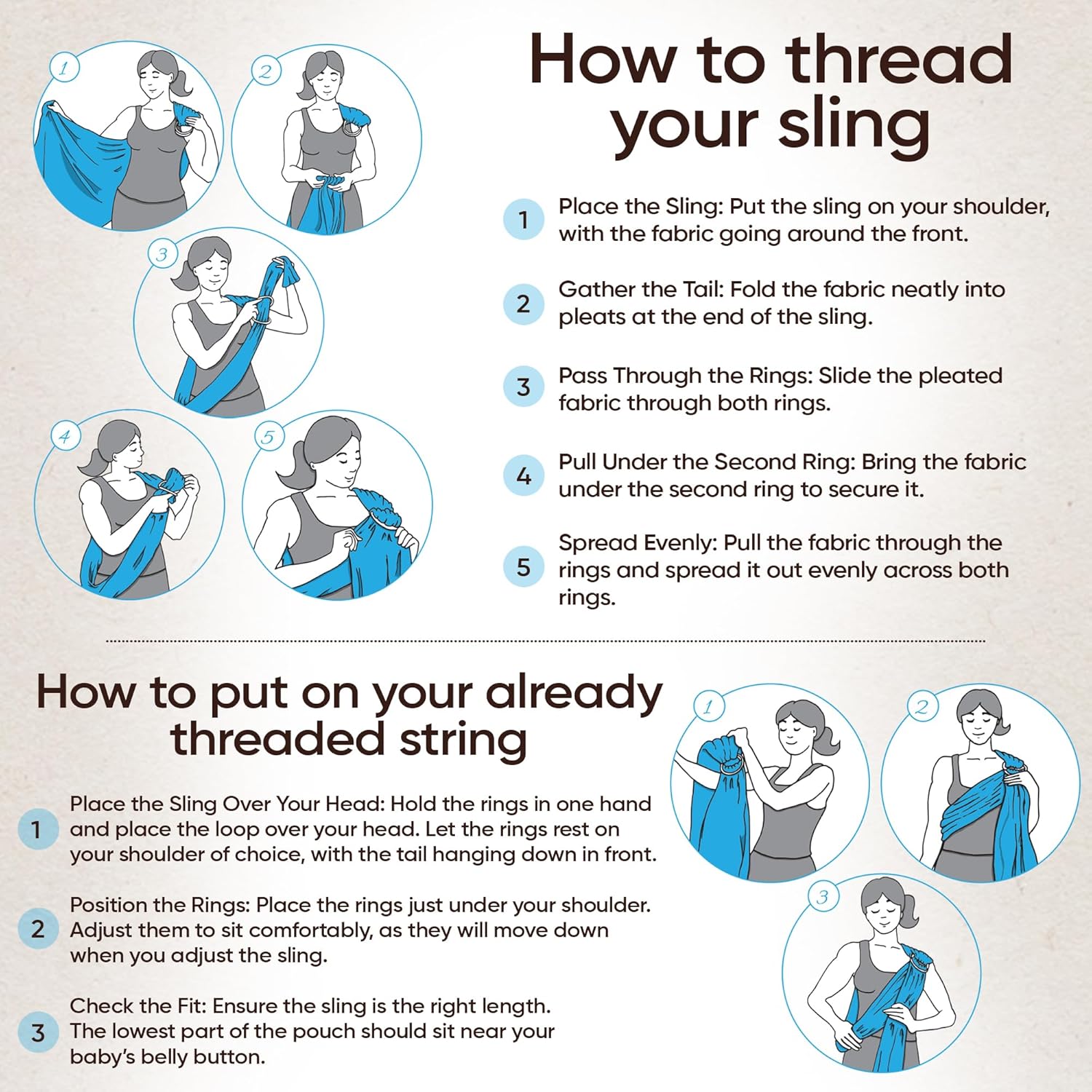 - EASY MAINTENANCE: Machine wash in cold water and line dry to keep your sling wrap baby carrier in great condition. Due to dyes, slight bleeding may occur in initial washes. Regularly check for wear and tear on this baby sling carrier newborn for a secure fit.