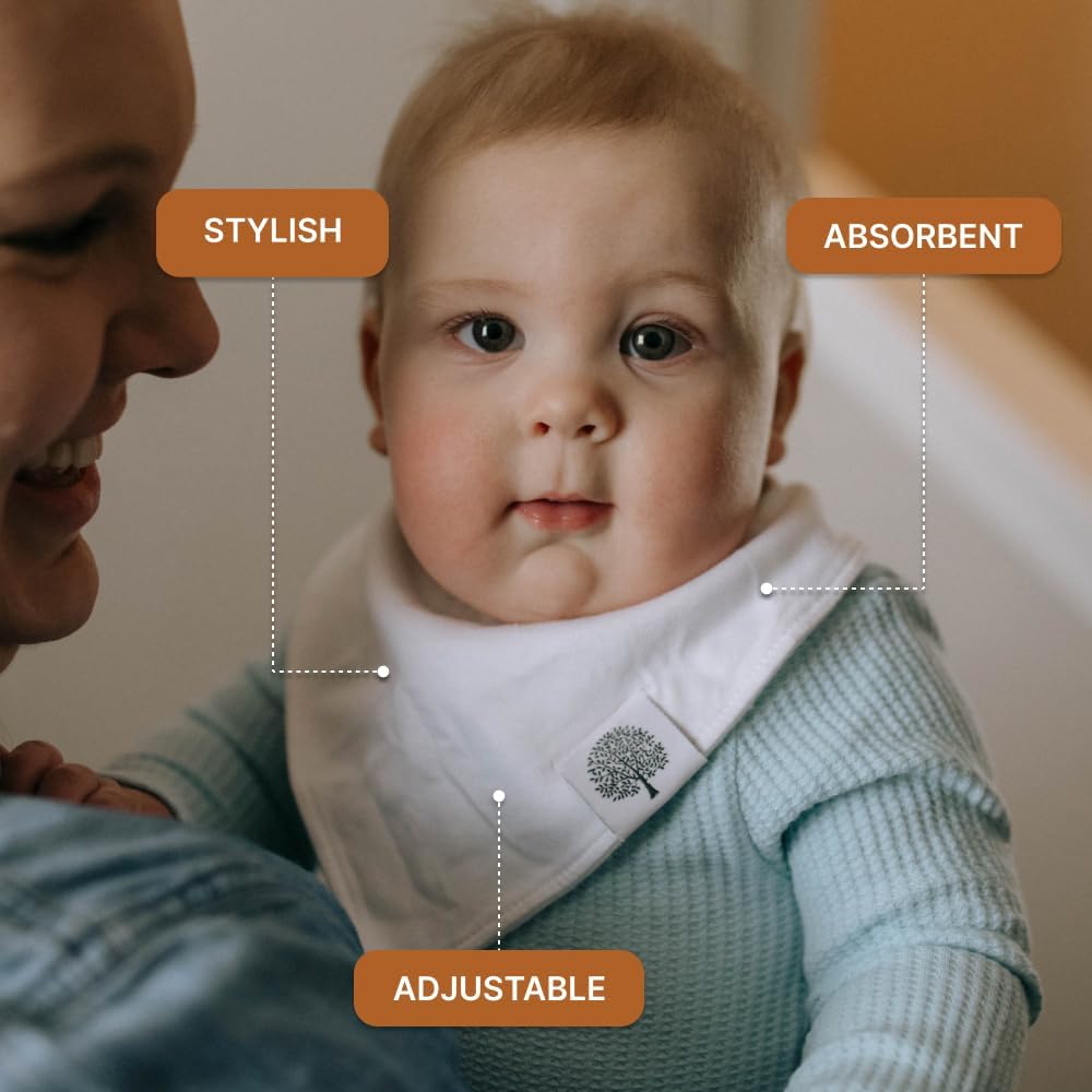 - SUPER SOFT, ABSORBENT & MESS-READY – Made with 100% cotton on the front and soft, absorbent polyester backing, these bibs catch drool, spit-up, and food messes, keeping baby dry, comfortable, and stylish all day long.