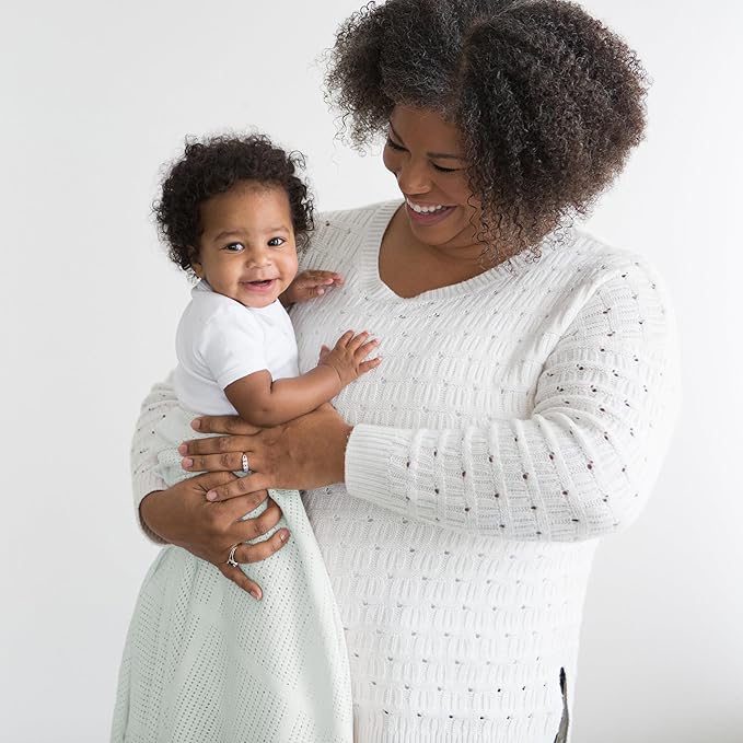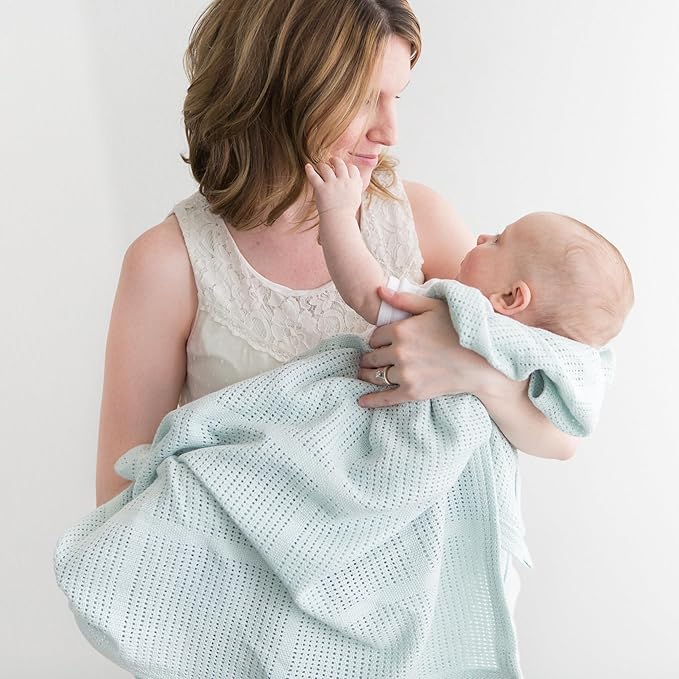 Amazing Baby Cellular Blanket, Premium Cotton Knit, Ultra Soft, Breathable, Cozy Gift for Baby Boys and Girls, Favorite Toddler Blanket, 44 x 44 inches (112 x 112 cm), Soft SeaCrystal