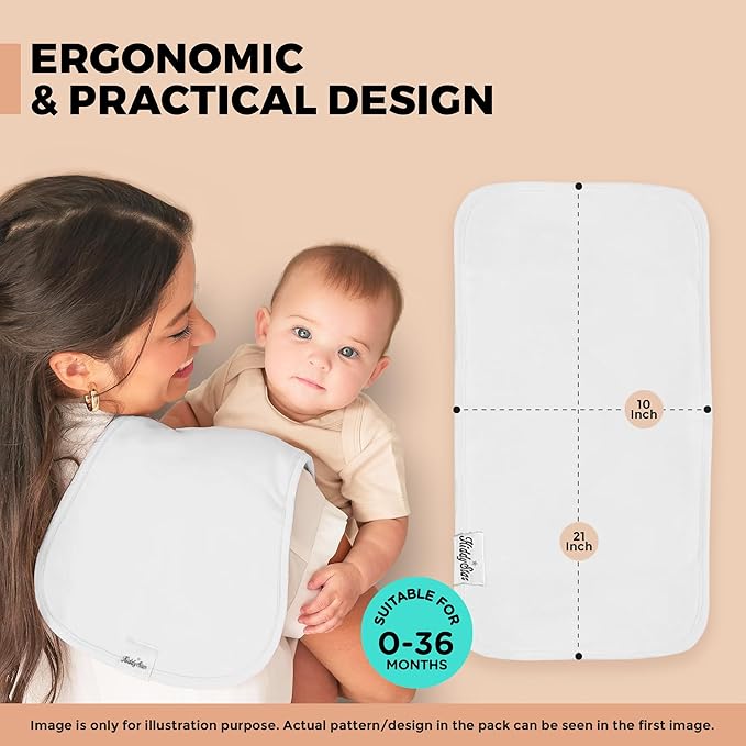 - 📏 EXTRA-LARGE COVERAGE, LESS MESS: Measuring 21 x 10 inches, each cloth provides generous shoulder and chest coverage to catch every drop of drool or spit-up. Whether you're feeding or burping, you’ll stay clean and dry—no need for outfit changes mid-day.