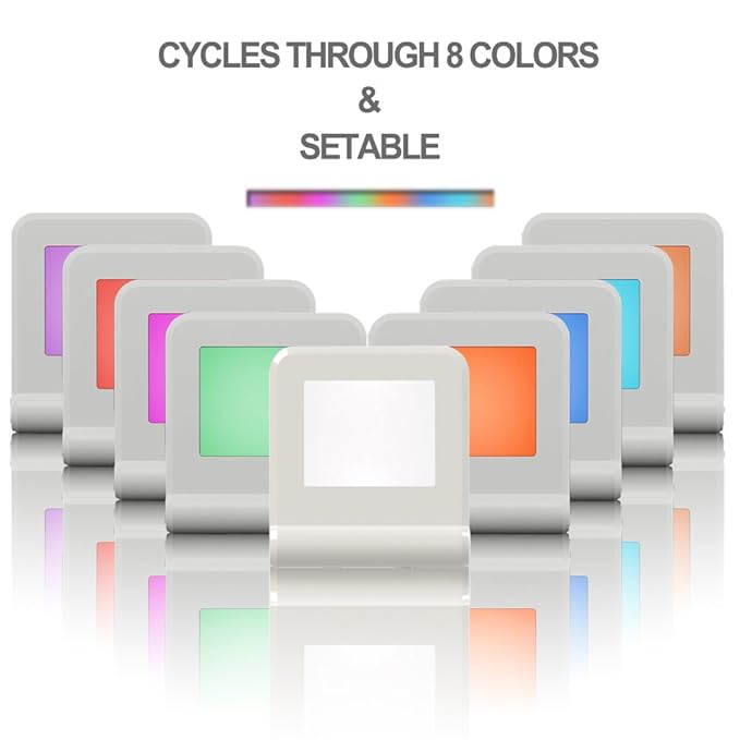 - ★MULTIPLE COLOR CHANGEABLE & SPECIFIC COLOR SETTABLE: This plug night light is multiple color changeable that it can change among more than 8 colors to create romantic atmosphere. Moreover, you can just press the round button on the right to set the light in your favorite color.