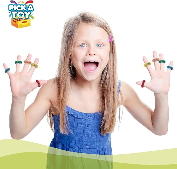 Acupressure Rings for Stress & Focus – 10 Quiet Metal Fidget Toys for Adults & Kids 5+ | Pick A Toy Sensory Set for Relaxation, Pain Relief & School Use