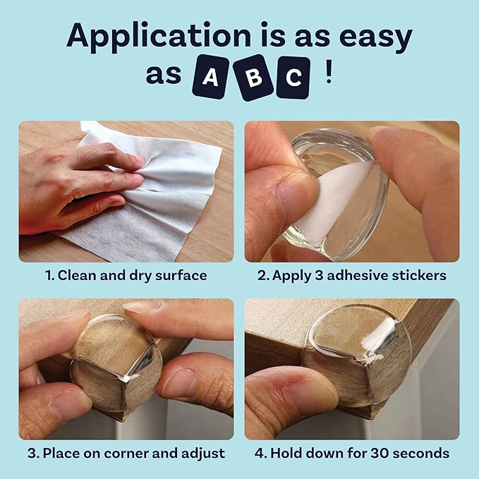 - Clear & Discreet: Don’t settle for ugly baby safety products that clash with furniture. Our clear options are stylish and resist decolorizations. The spherical design is more dense & protective than flat L-shaped guards, and it’s fuss-free to apply—unlike awkward foam rolls, which need perfectly steady hands to cut and place!