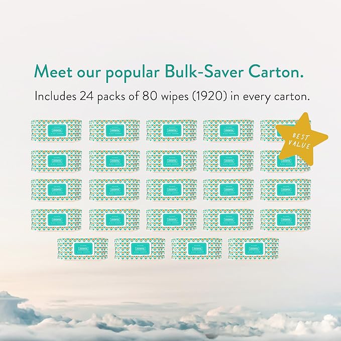JOONYA Unscented Baby Wipes — Plant-Based, Fragrance-Free Bulk Diaper Wipes | Hypoallergenic, Non-Toxic & Biodegradable Wet Wipes for Sensitive Newborn Skin | 24 Packs of 80 Wipes (1,920 Total)