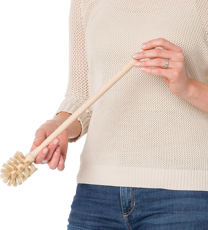 - Efficient Cleaning - The dense natural bristles of this brush effectively scrub away residue and dirt, making it an excellent bottle scrubber brush and dish brush