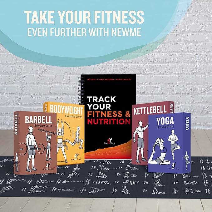 NewMe Fitness Yoga Mat for Women and Men - Large, 5mm Thick, 68 Inch Long, Non Slip Exercise Mats w/ 70 Printed Yoga Poses for Pilates, Workout and Stretching - Home and Gym Essentials