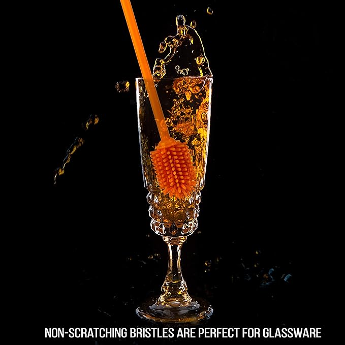 - NO SCRATCHES: Soft yet durable silicone bristles of our water bottle cleaner brush and long straw cleaner remove stubborn residue without scratching glass, stainless steel, or plastic. Ideal for glass water bottles, vases, baby bottles, pitchers, blenders and reusable straws.