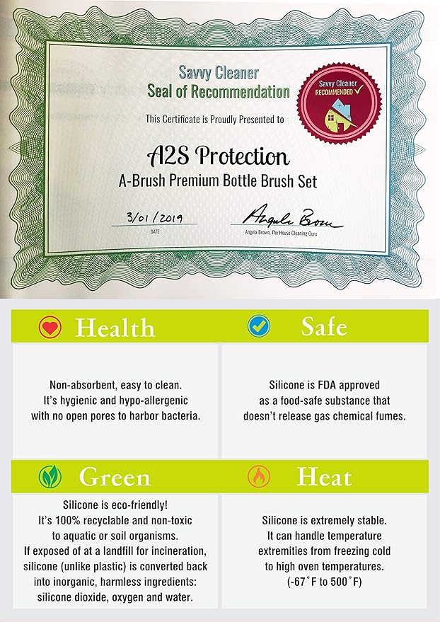 - Safe Cleaning – Our 100% BPA-free, food-grade silicone brushes for cleaning narrow neck bottles, glasses, and plastic are safe for hot cleaning (up to 140°F). The A-Brush can be washed in a dishwasher or with boiling water. Lightweight and microwave safe, our premium bottle washers deliver a consistent and high-quality clean. We are a US-based company with superior customer service, any questions or problems, please message us, and a member of our team will get back to you right away