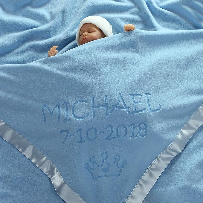 - PERSONALIZED WITH NAME & BIRTH DATE - Ideal receiving blankets, theme crib set or 1st birthday gift
