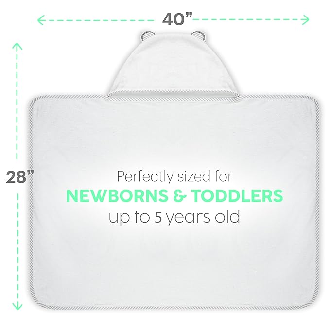 - Generous Size with Snug Hood Fit – Our large hooded bath towel is designed to grow with your baby, offering ample coverage from head to toe. The 35" x 35" size includes a hood to keep your baby’s head warm & dry, with a snug fit that won’t slip off.