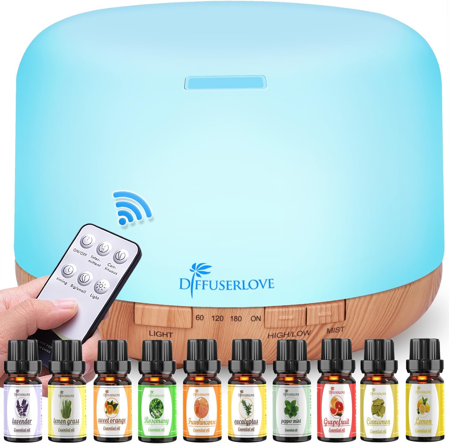- 【Large Tank Diffuser】Large 500ml water capacity that can continue use up to 10 hours each time. 4 timers: 60/120/180/continuous modes, High/ Low modes as you choose. Enjoy life to the full and watch your mood improve.