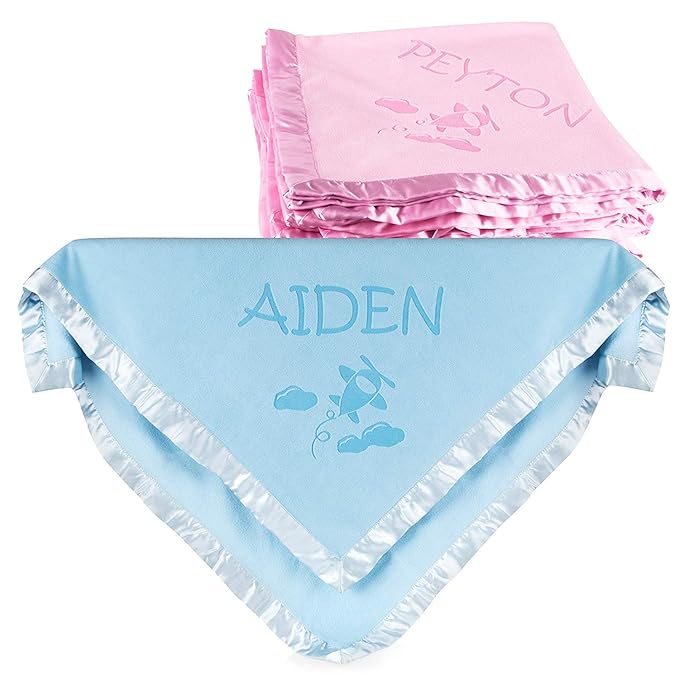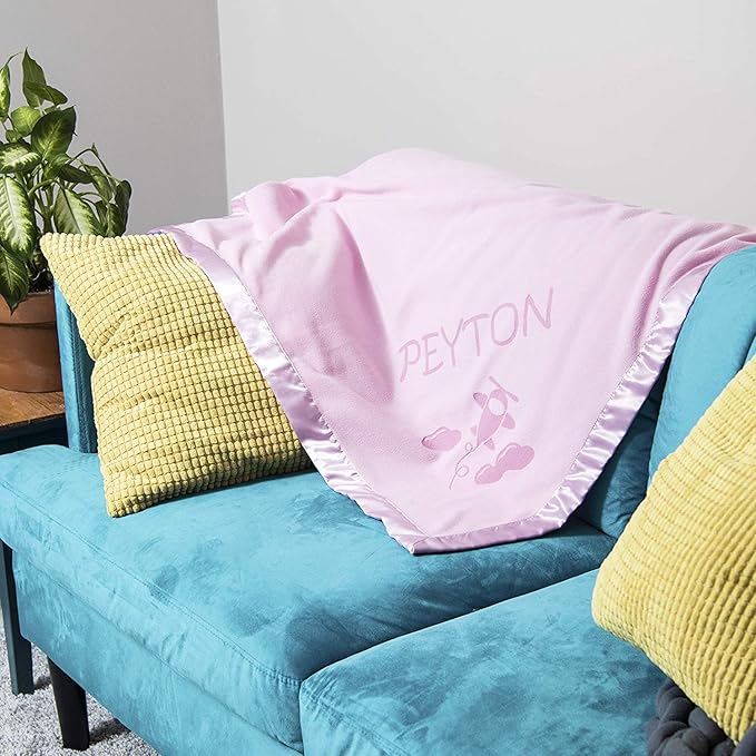 Custom Catch Ships Next Day - Vermont Workshop - Personalized Airplane Baby Blanket - Boy Name Gift - Blue or Pink (1 Text LIne)