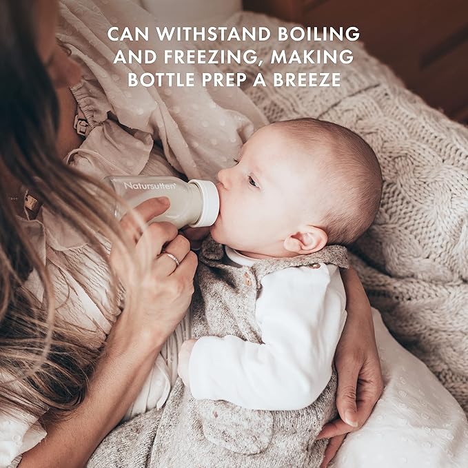 Natursutten Glass Baby Bottles 8 oz and 4 oz - Anti-Colic Baby Bottles for Breastfeeding Babies, Suitable for Boiling and Freezing - Bottles with Natural Rubber, Slow Flow Nipples for Newborn Babies