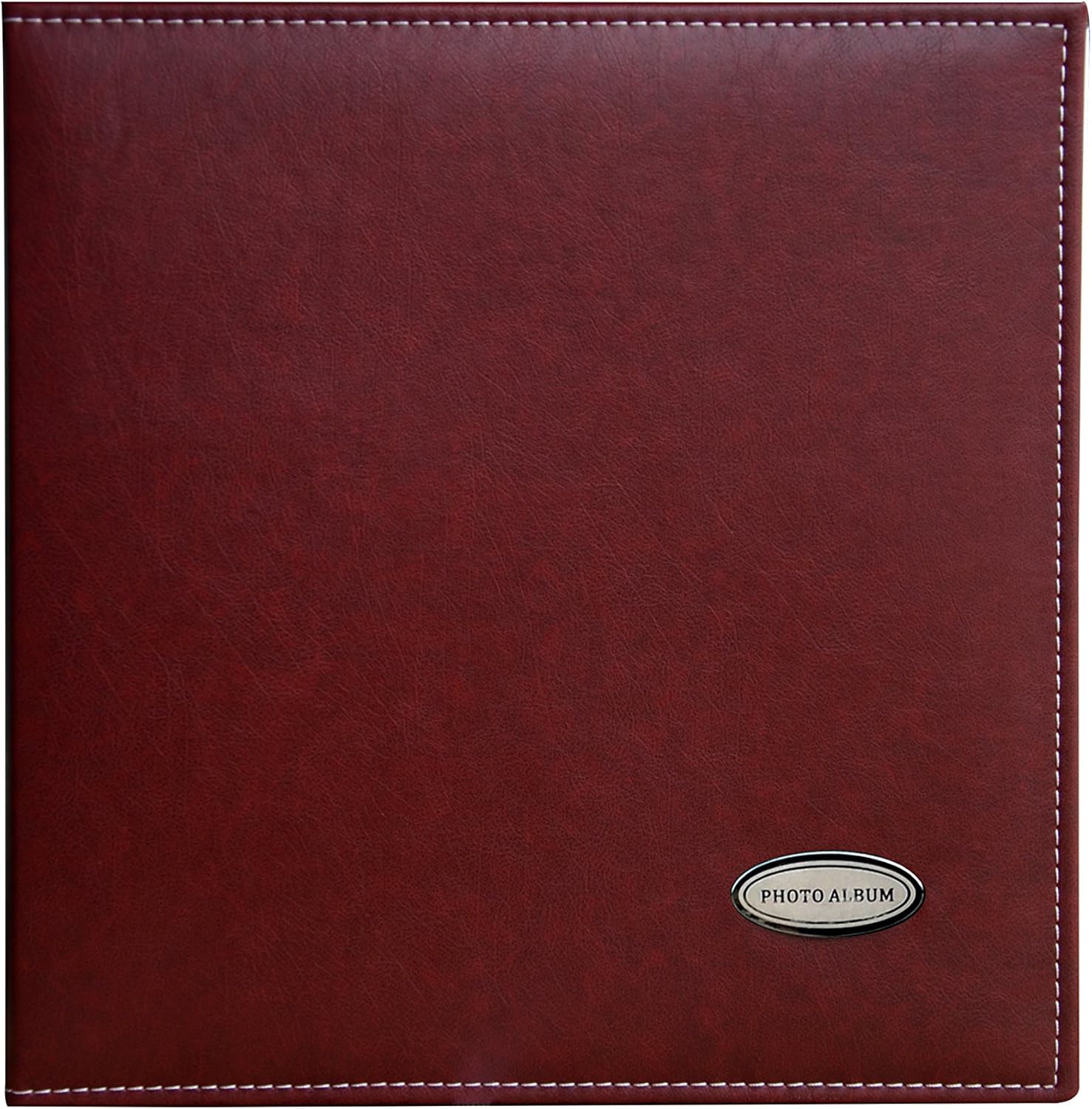 Magnetic Self-Stick Page Photo Album, Family Album, Leather Cover, Hand Made DIY Albums Holds 3x5, 4x6, 5x7, 6x8,8x10 Photos (Wine Red, Large)