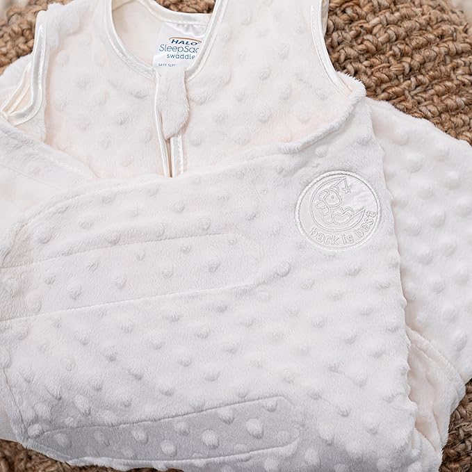 HALO Sleepsack Swaddle, 3-Way Adjustable Swaddle Blanket, TOG 3.0, Velboa Plush Dots, Cream, Newborn, 0-3 Months