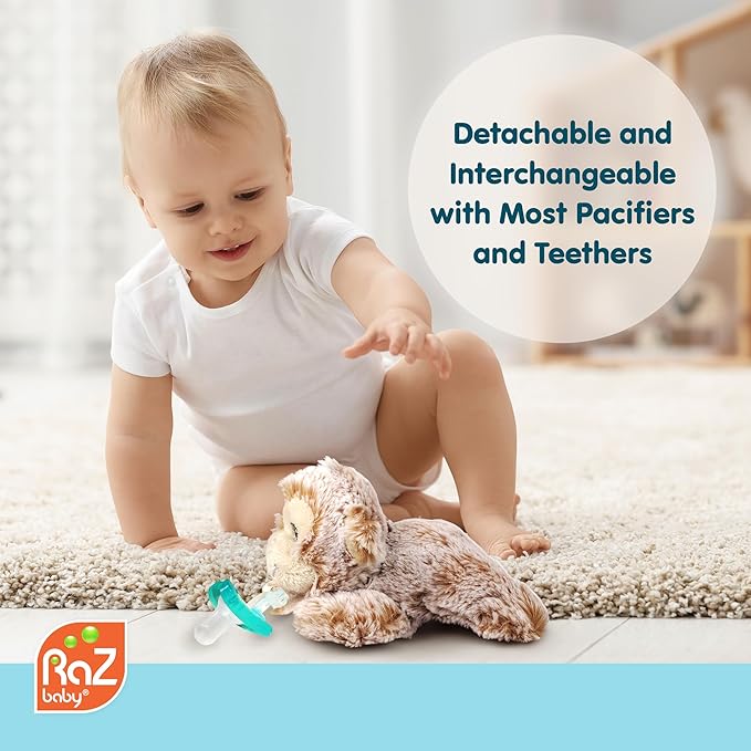 - Easy to Clean & Sterilize: The RaZbuddy plush is machine washable for effortless maintenance, while the detachable JollyPop pacifier should be sterilized first, then dishwasher-safe for easy cleaning and convenient attachment swaps.