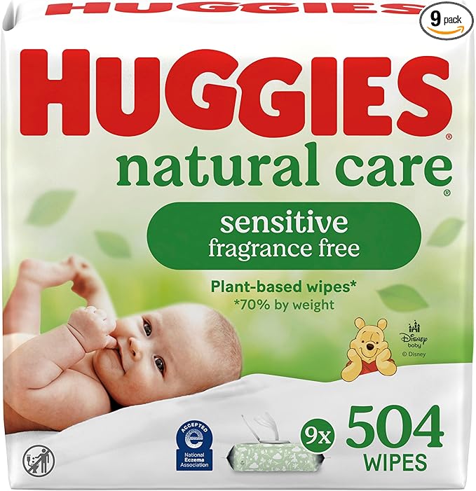 - Plant-Based Wipes*: Huggies Natural Care Sensitive Baby Wipes are plant-based* (*70%+ by weight plant-based materials)