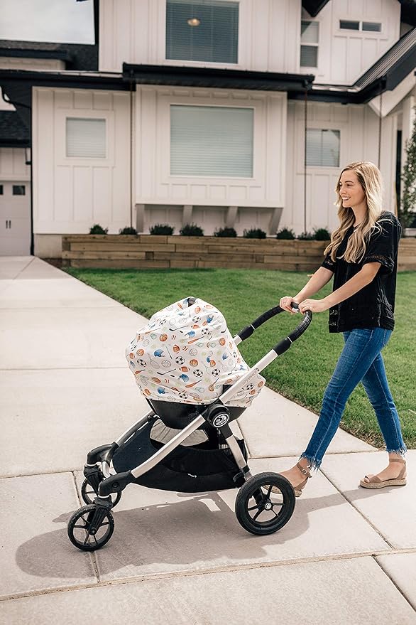 Baby Car Seat Cover Canopy and Nursing Cover Multi-Use Stretchy 5 in 1 Gift Varsity by Copper Pearl