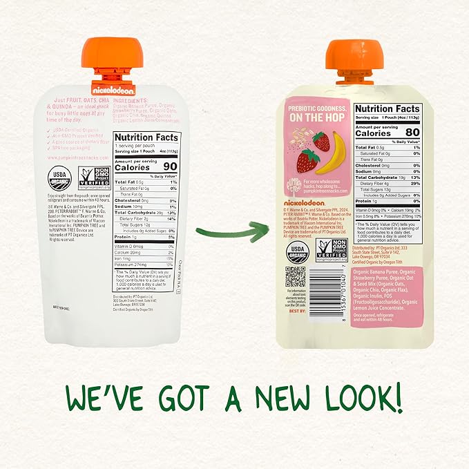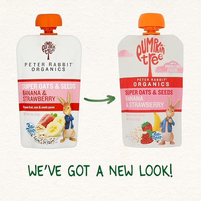 - Peter Rabbit Organics Super Oats & Seeds Banana & Strawberry Organic Fruit Puree, USDA Certified Organic, Non-GMO, 4 Ounce (Pack of 10)