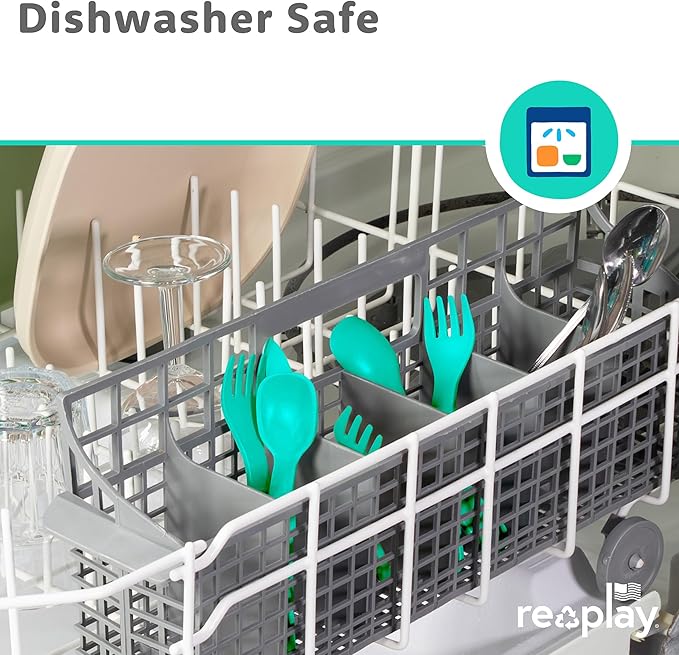 Re-Play Toddler Forks and Spoons Set - 4x4 Utensils Set for Kids - Dishwasher and Microwave Safe - Made in USA - Set of 8-5.8" x 1.2" x 0.2" - Aqua Asst