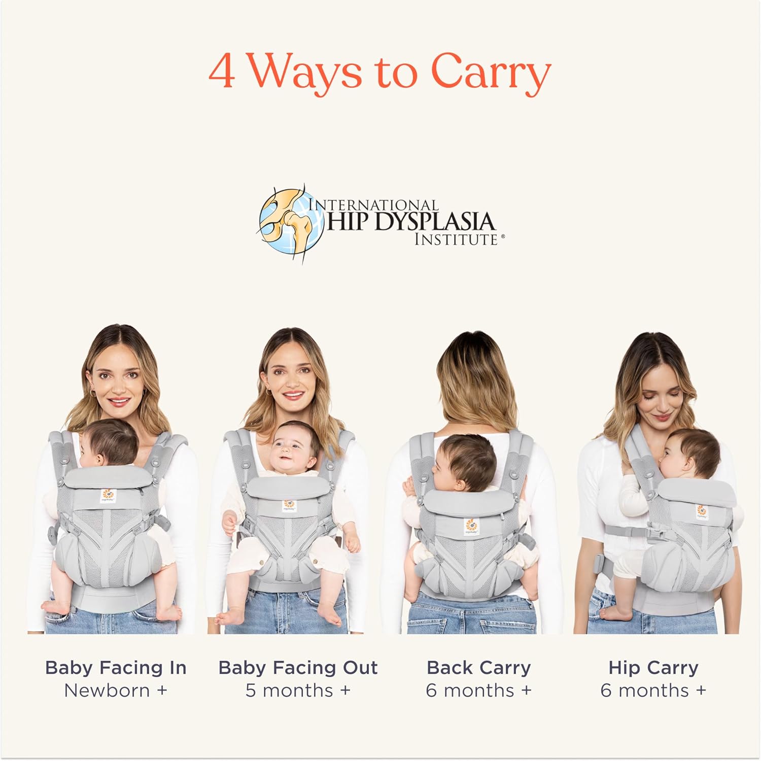 - ERGONOMIC SUPPORT THROUGH EVERY STAGE - The adjustable bucket seat ensures your baby is always supported in the recommended “M” position for healthy hip development. Recognized as a hip-healthy baby carrier by the International Hip Dysplasia Institute, it’s the ideal choice for growing babies.