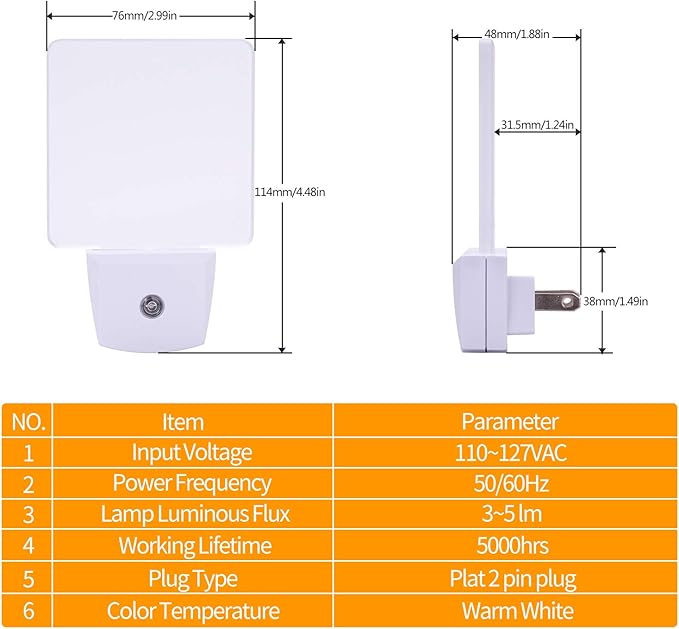 - 【ENERGY AND MONEY SAVING】This LED night light with 50,000 hours lifespan, almost 5.7 years, it's no need to replace, the maximum power consumption only 0.5W, which help you save energy and money.