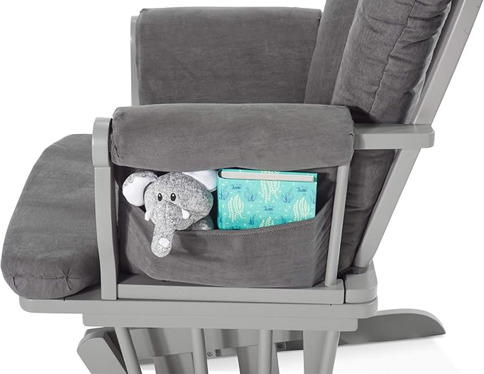 Child Craft Cozy Glider Rocker and Ottoman Set, Padded Cushion with Convenient Storage Pockets, Solid Wood Base & Frame (Cool Gray with Dark Gray Cushion)