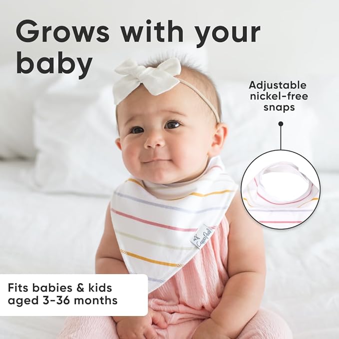 - GROWS WITH YOUR BABY: Each bib features two adjustable nickel-free snaps, allowing for a perfect fit from newborn through toddlerhood (3–36 months).