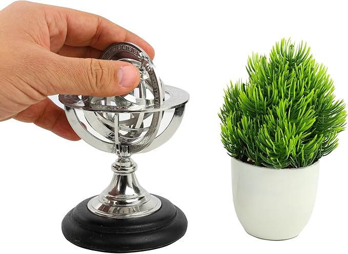 Antique Vintage Zodiac Armillary Brass Sphere Globe Wooden Display | Pirate's Antique Ship Decor | Nagina International (Small, Nickel Plated)