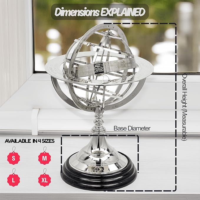 Antique Vintage Zodiac Armillary Brass Sphere Globe Wooden Display | Pirate's Antique Ship Decor | Nagina International (Medium, Nickel Plated)