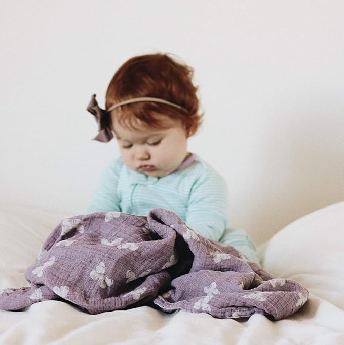 Ely's & Co. Muslin Swaddle Blankets for Baby Girls – 3 Pack, 47" x 47" Lavender Butterfly Design, 100% Soft Muslin Cotton