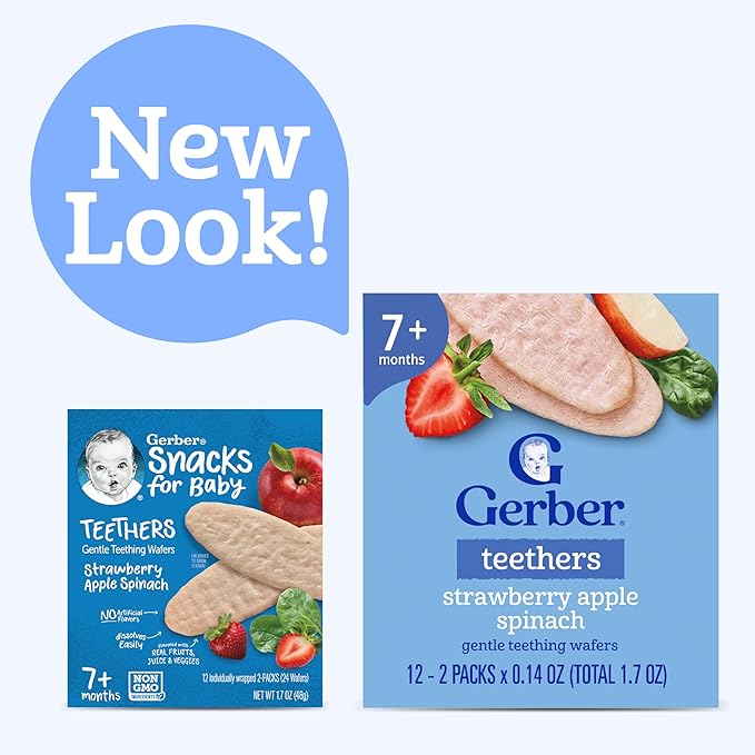 - BABY TEETHING MUST HAVES: Teething is a big milestone — filled with new sensations, and a few fussy days. Gerber Teething Wafers are the baby teething must haves that give your little one a tasty way to explore new textures. Our baby teething snacks are designed with care for growing smiles